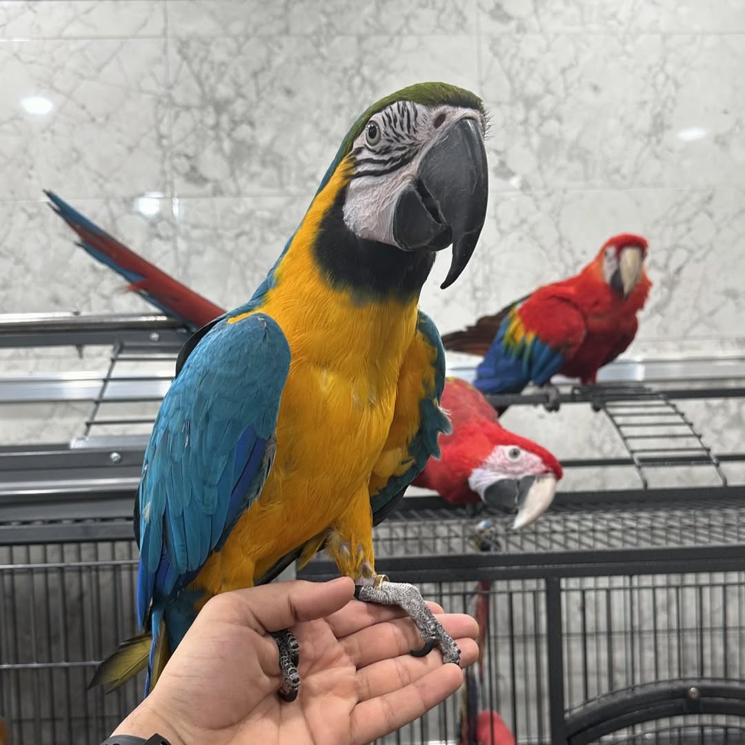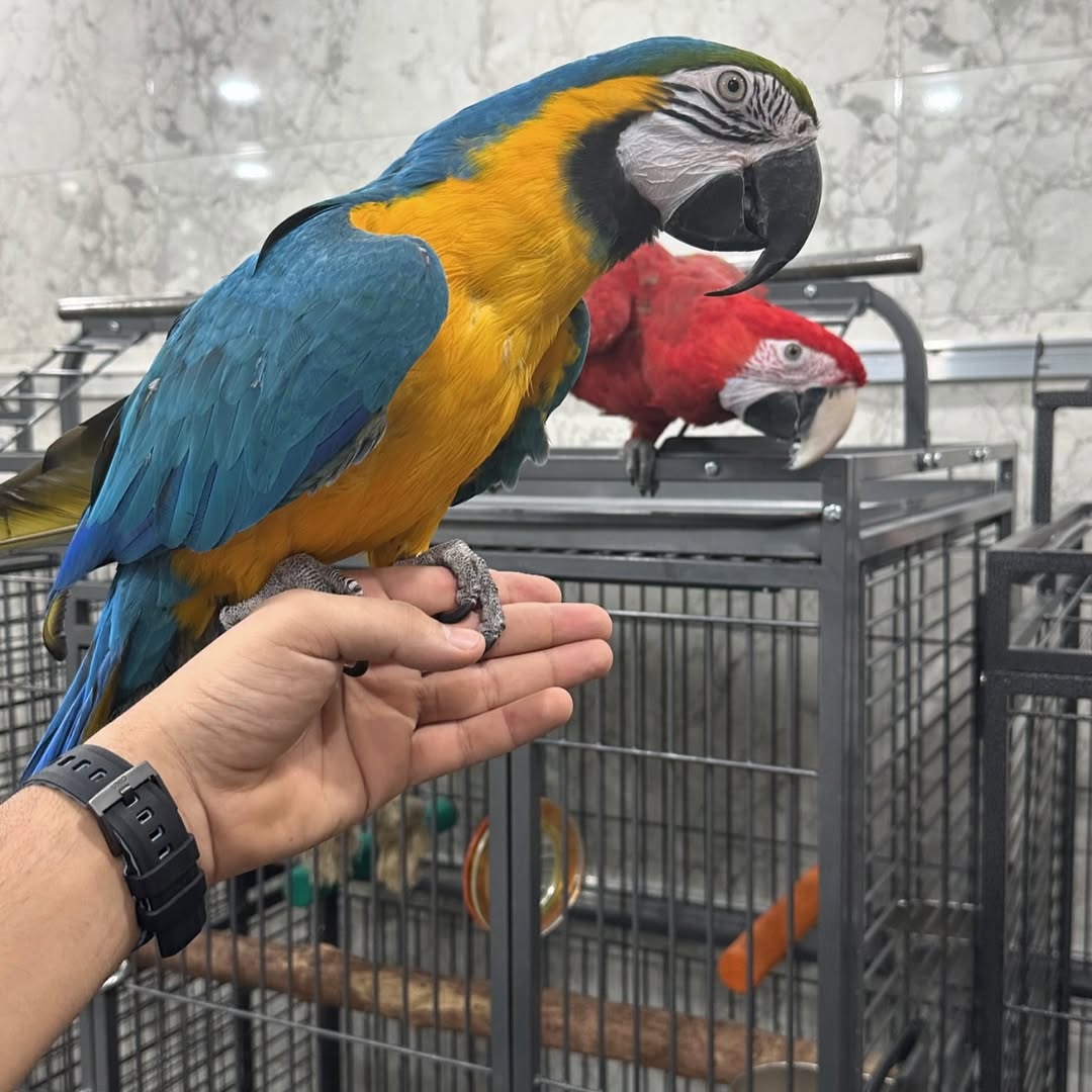 These magnificent Blue & Gold Macaw Parrots are the epitome of avian beauty and intelligence, with their vibrant cobalt-blue wings, gleaming golden underparts, and striking white facial patches. Every feather shimmers with health, a testament to our premium care and nutrient-rich diet.